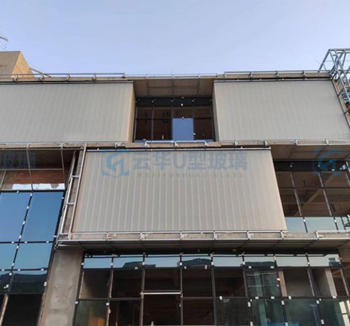U玻幕墻為無鋼架龍骨結(jié)構(gòu),兩翼起到加強作用,強度超過同厚度普通平板玻璃的10倍以上,能夠自成墻體。